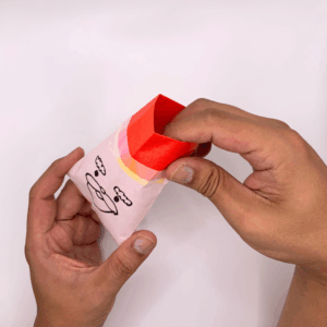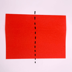 ①折り紙を半分に折る。さらに折り線に合わせて折る。