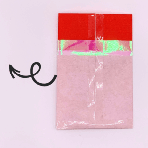 ③底と中心をセロハンテープでとめて、色の境目の部分をマスキングテープなどでとめて裏返す。
